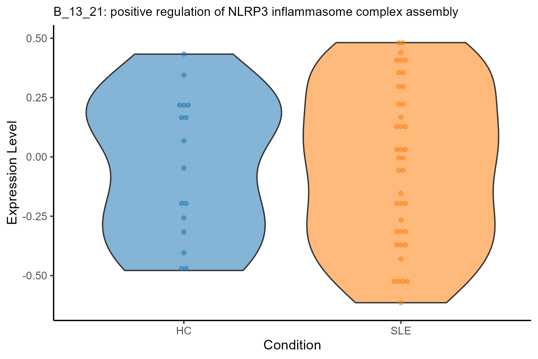 | B_13_21: positive regulation of NLRP3 inflammasome complex assembly | 0.0311659797583792 | 0.853856540599431 | B | SLE | |