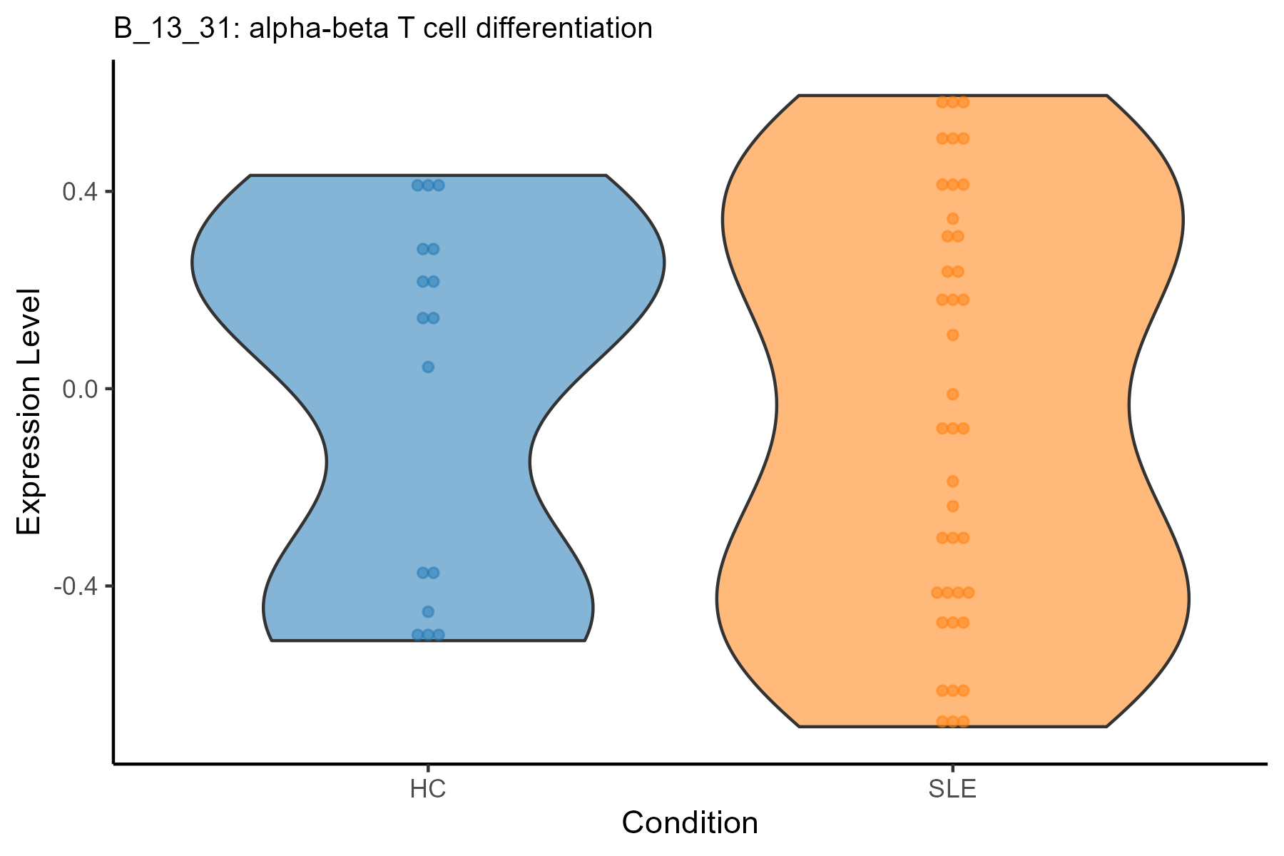| B_13_31: alpha-beta T cell differentiation | -0.0362726674367734 | 0.860674531928099 | B | SLE | |