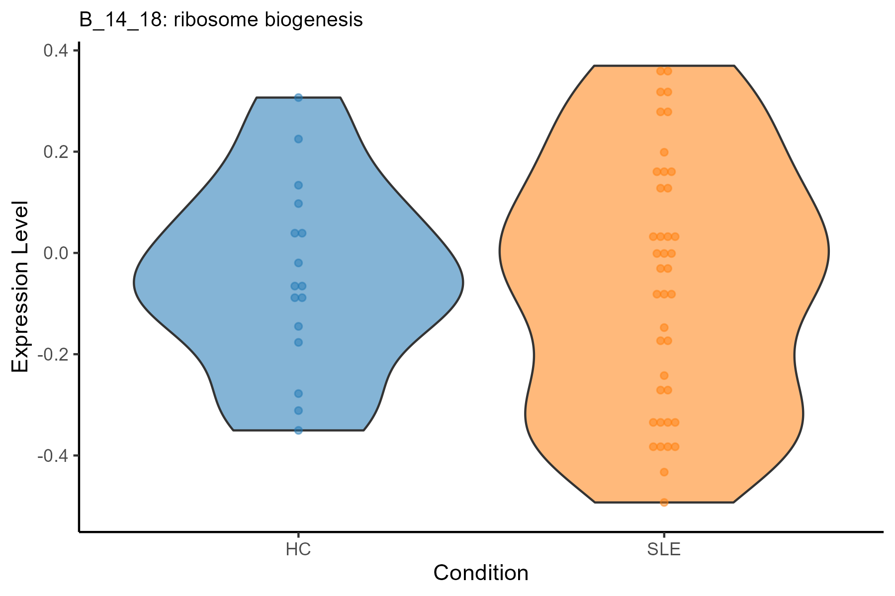| B_14_18: ribosome biogenesis | 0.0333346803115324 | 0.798020003341314 | B | SLE | |