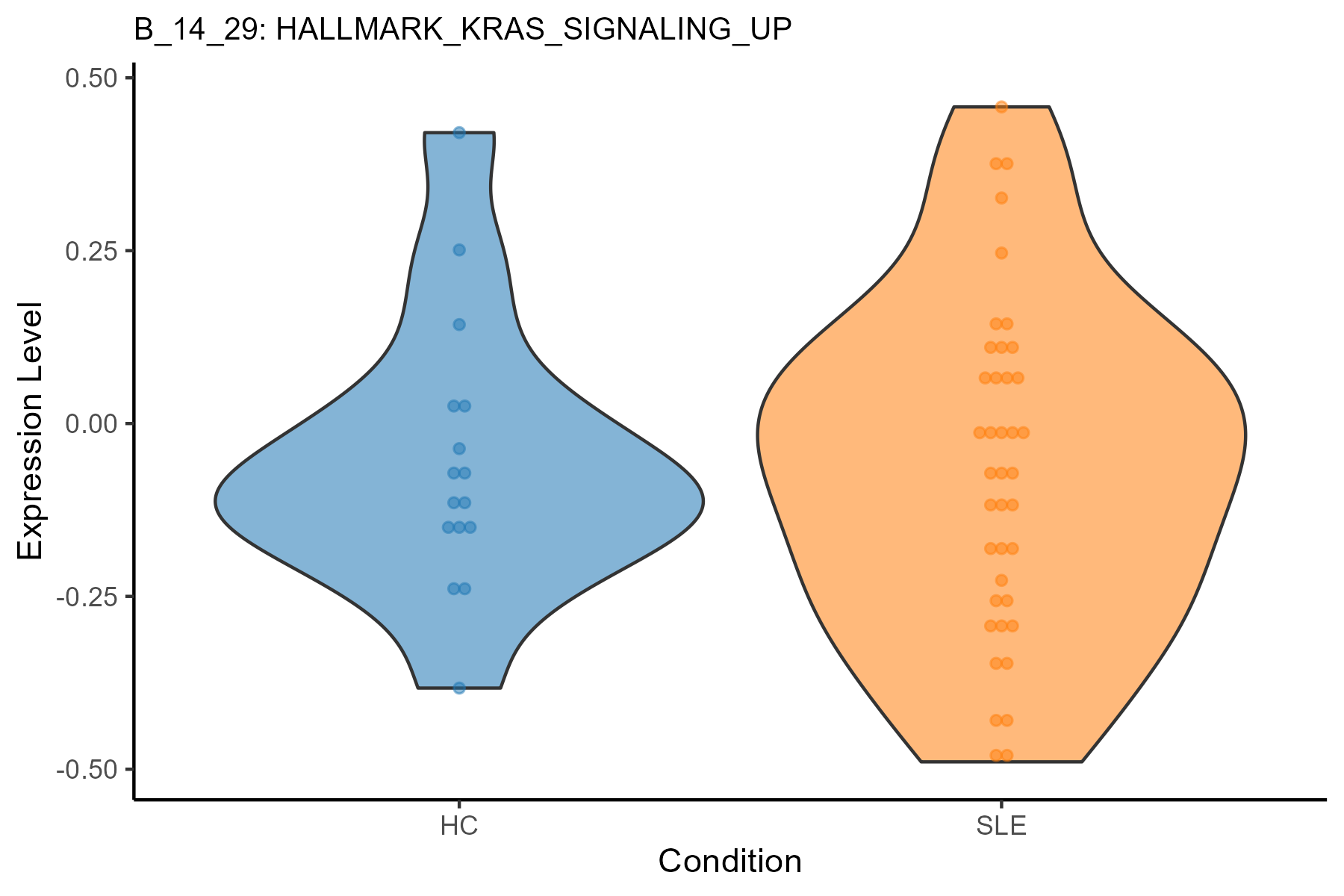 | B_14_29: HALLMARK_KRAS_SIGNALING_UP | 0.0404656563412753 | 0.753409553426521 | B | SLE | |
